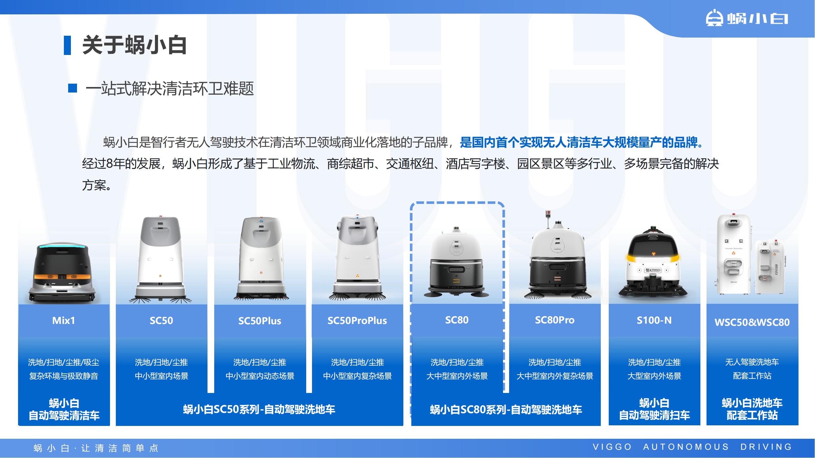 蜗小白SC80 是一款适用于大中型室内场景的无人驾驶洗地车,配备激光雷达、深度
